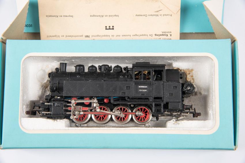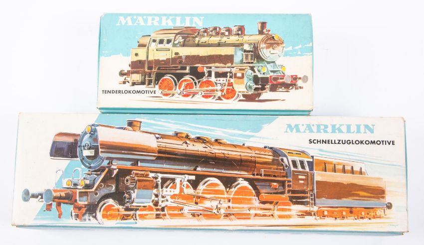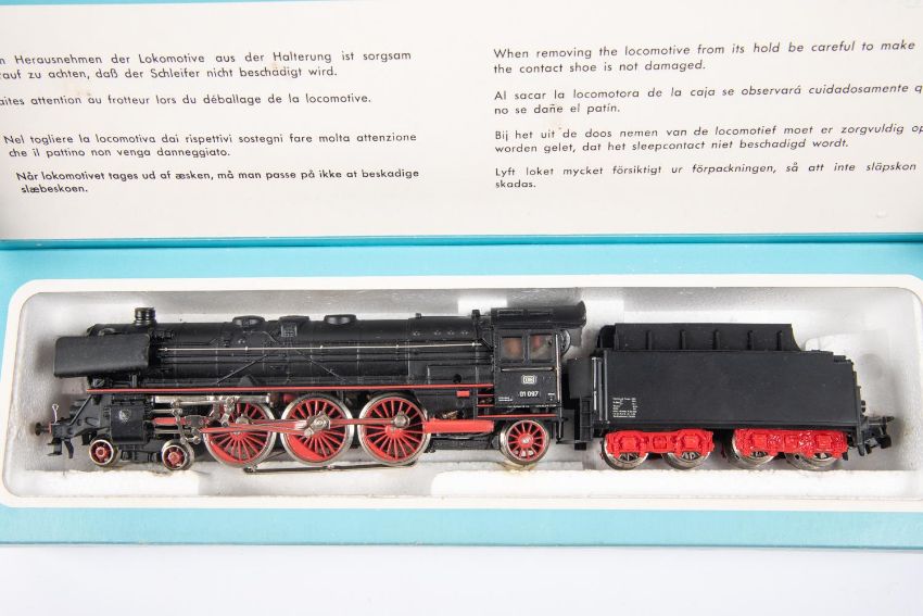 2 Marklin HO locomotives. DB class 01 4-6-2 tender locomotive, RN01097. Together with a DB class 81 0-8-0 tank, RN 81004. Both in black and red livery. Both boxed, light age wear. Locomotives VGC. £70-90