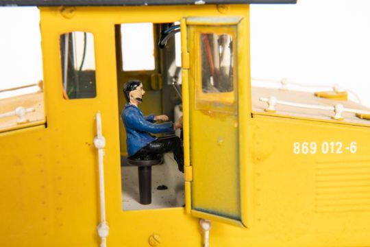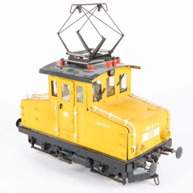 A Marklin Gauge One (Spur 1), 45mm, Deutsche Bahn 0-4-0 Class 869 locomotive. An electric pantograph shunter in DB yellow livery, 869 012-6. Locomotive GC, evidence of running and cleaning required. £50-70