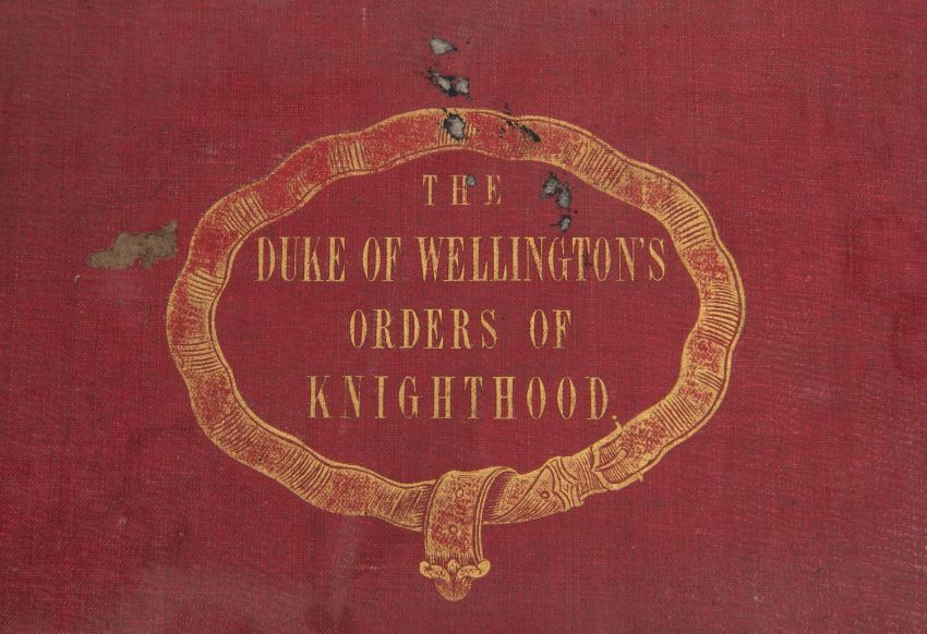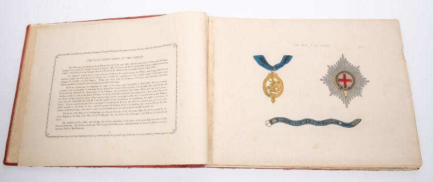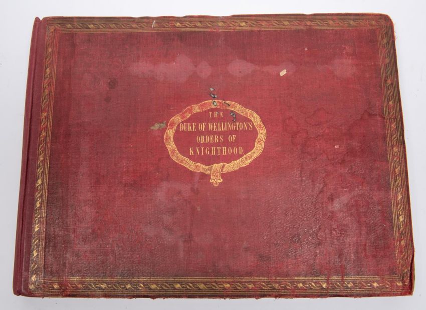 "The Duke of Wellington's Orders of Knighthood" being a 15" x 9" book containing 69 coloured plates of Orders and medals, given to Wellington by Royalty of various countries, printed c 1850, GC £70-80