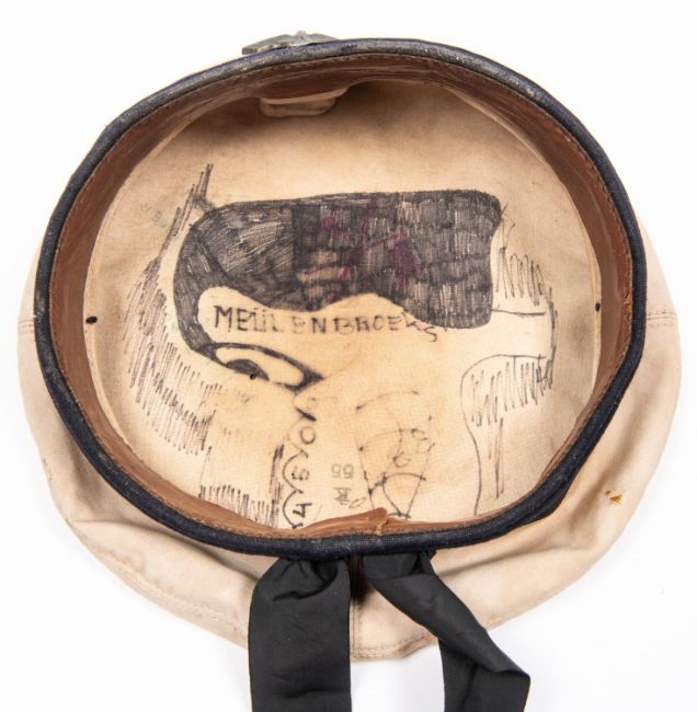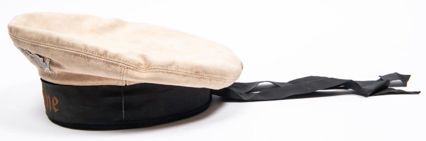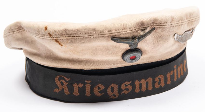 A Third Reich Matrosen cap, with metal insignia and "Kriegsmarine" cap tally, GC (lining bears various non standard markings of name etc). £230-260