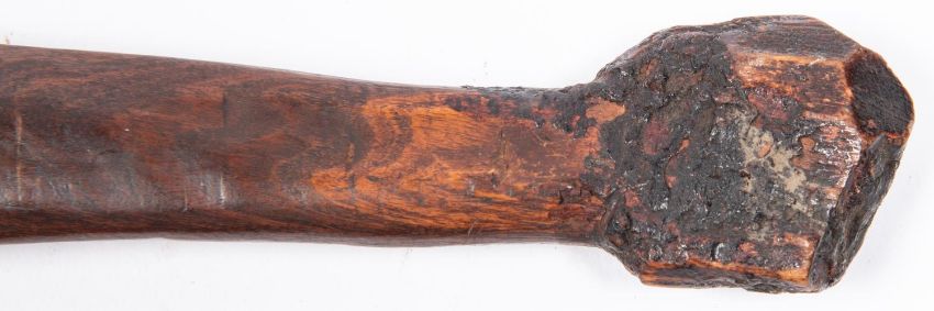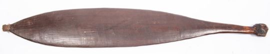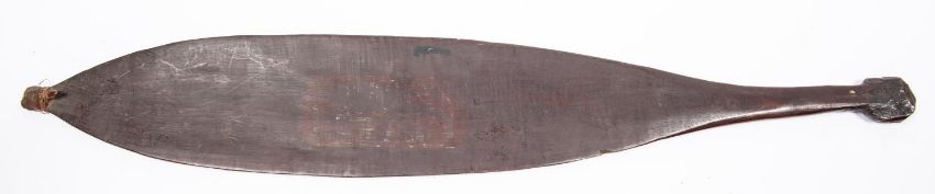 An Australian aborigine wooden spear thrower "wommera", 25" overall, of slightly concave spatulate shape with small hook secured by rattan binding. GC, probably 19th century. £220-280